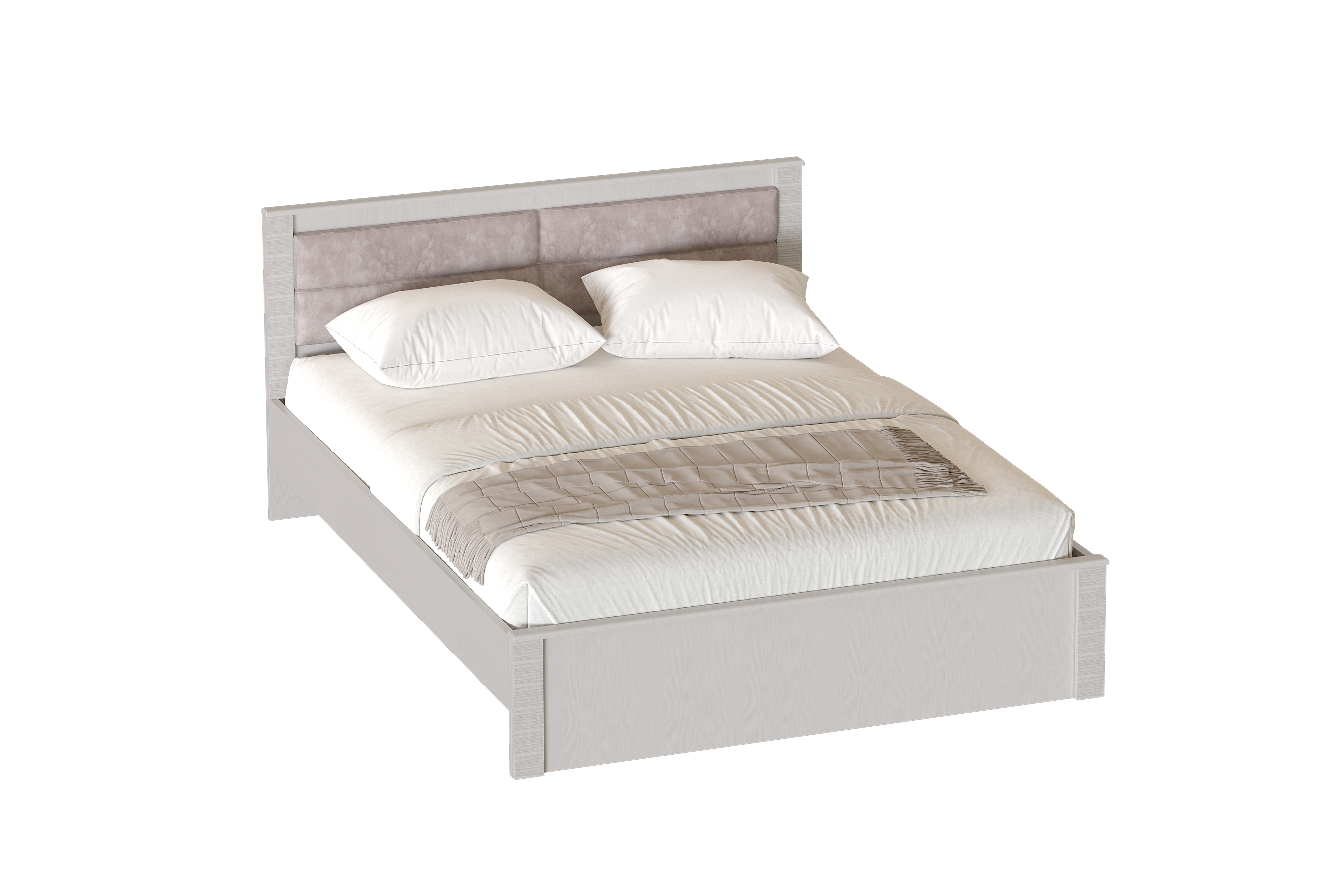 Кровать оснащена мягким изголовьем, состоящим из четырёх элементов, обтянутых экокожей.