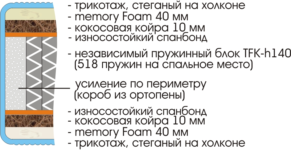 ортопена , блок независимых пружин , Memory , кокосовая койра