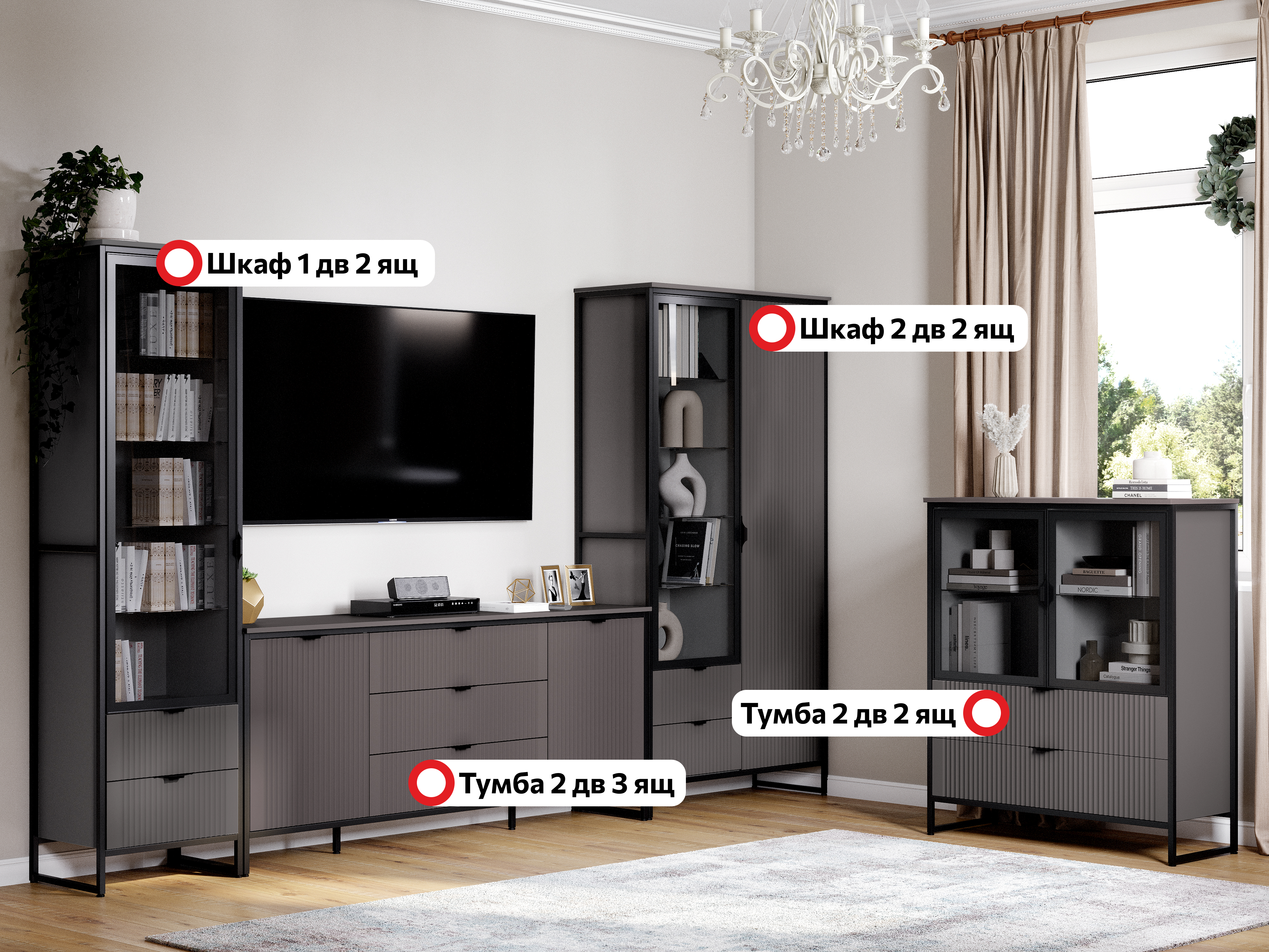 Тумба 2 дв 2 ящ "Нора" гостиная Графит Тумба 2 дв 2 ящ "Нора" гостиная Графит