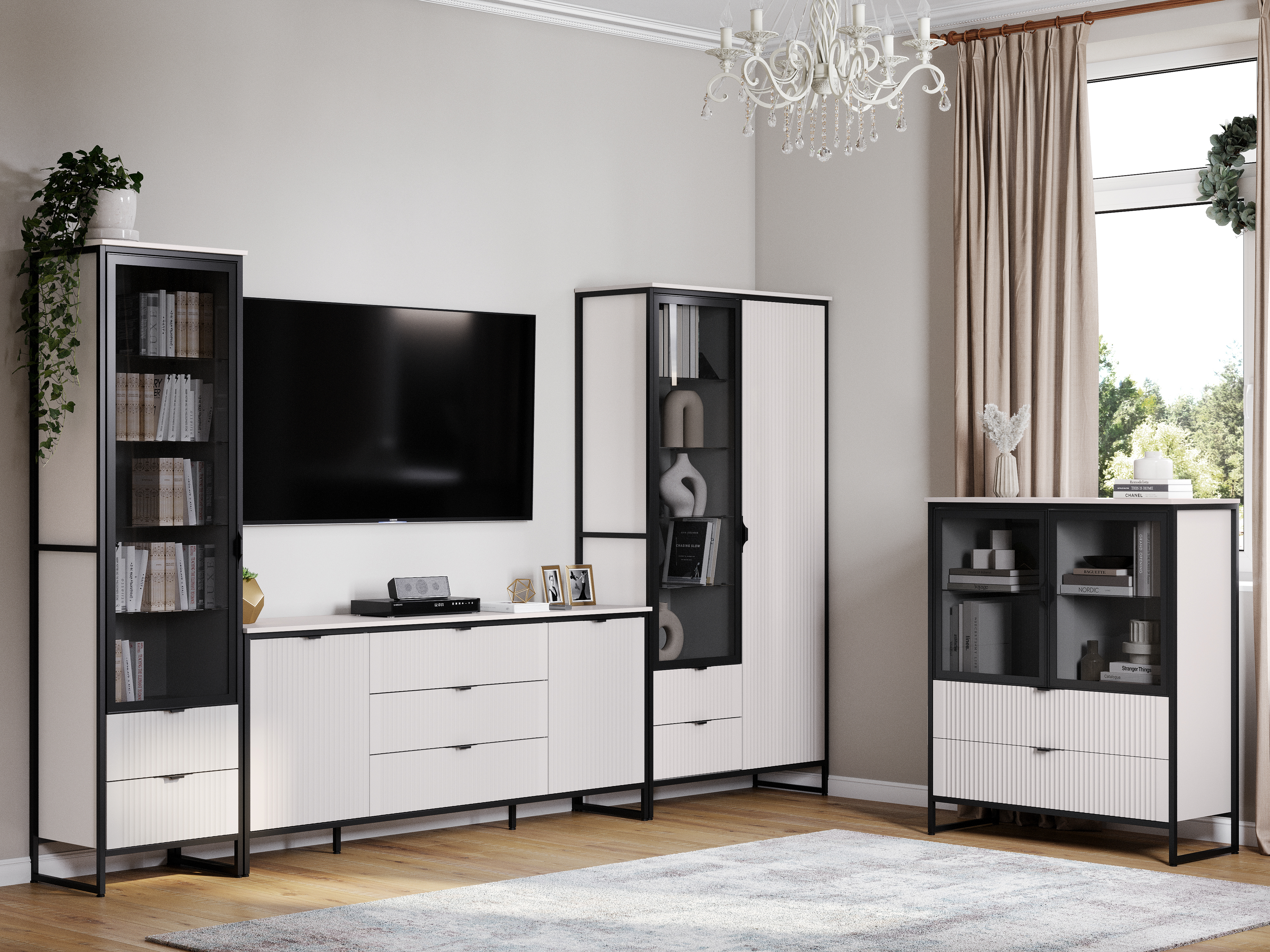 Коллекция модульной гостиной "Нора" - современный оригинальный стиль. Декоративная продольная фрезеровка на МДФ фасадах и опоры на металлокаркасе соответствуют модным тенденциям этого года в ведущих зарубежных коллекциях. Дизайн коллекции гармонирует со стилем минимализм и лофт.
